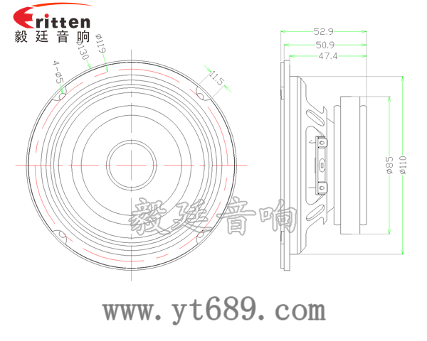 此款優(yōu)異用于5寸50芯多媒體音箱喇叭單元上,聲音清脆、穿透力強,毅廷喇叭廠家受到廣大客戶的信賴,歡迎您來批發(fā)訂購。