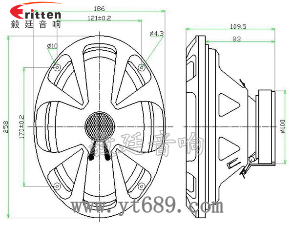 6寸異型外磁鐵盆架全頻喇叭,采用是高性能鐵氧體,音色清晰、飽滿;