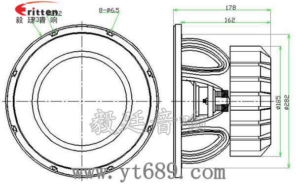 12寸圓形重低音喇叭,采用的是高純度的鋁盆架,加強加寬壓鑄磨砂,承載著大型磁路和振動系統(tǒng),保證了大功率工作時的穩(wěn)定性;