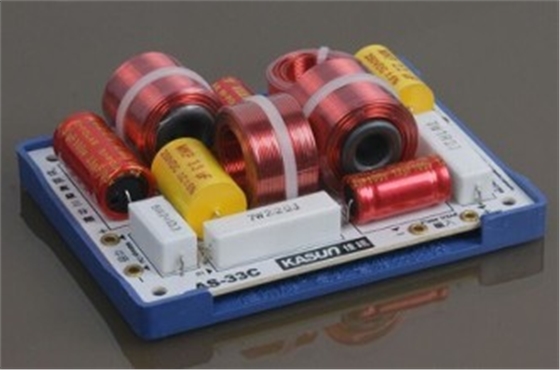 功率分頻器也稱無源式后級分頻器,是在功率功放之后進行分頻的。它主要由電感、電阻、電容等無源組件組成濾波器網(wǎng)絡(luò),把各頻段的音頻信號分別送到相應頻段的揚聲器中去重放。