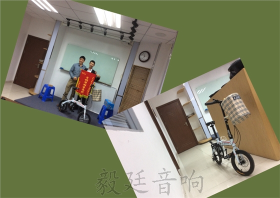 外貿部的朱劍友,有著秀氣的外表及儒雅的內涵。每一日你說付出的代價都比前一日高,因為你的生命有消短了一天,所以每一日你都要更積極。今天太寶貴,不應該為酸苦的憂慮和辛澀的悔恨所銷蝕,抬起下巴,抓住今天,它不再回來。男兒當自強,責任勇?lián)?。他肯努力、肯改變、肯擔當,看到這輛價值999巧小可愛的自行車就是對他拿到毅廷喇叭廠12月份醉高銷售額的獎勵,對他的肯定!可真是后生可畏呀!