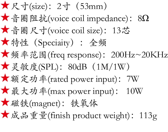 優(yōu)異用于53mm7W13芯藍牙音箱喇叭以及無線桌面音箱喇叭單元上,低頻厚實、音色清晰,是客戶的優(yōu)選產(chǎn)品。
