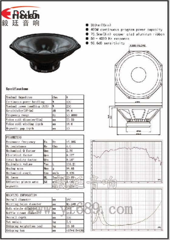 15寸400瓦重低音喇叭15寸400瓦重低音喇叭5.25寸25W中低音喇叭5.25寸25W中低音喇叭