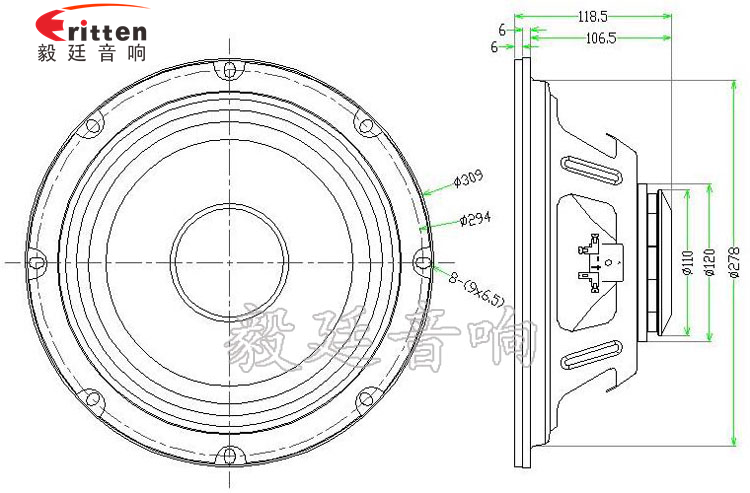 采用50芯KSV音圈,布邊紙盆,表面經(jīng)過特殊的膠水處理,可以更好的防潮效果,彈性強,阻尼適中;