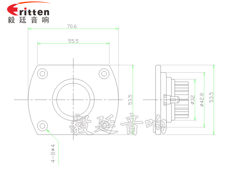 2.5寸異型塑料盆架內(nèi)磁,采用強(qiáng)大的磁性給喇叭提供強(qiáng)大的動(dòng)力,黑色的鋁面板,4個(gè)安裝孔;