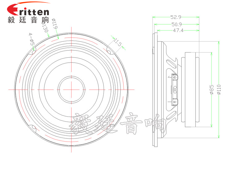 5寸圓形鐵盆架,采用的是高性質(zhì)外磁全頻喇叭,功率大,強(qiáng)勁有力;