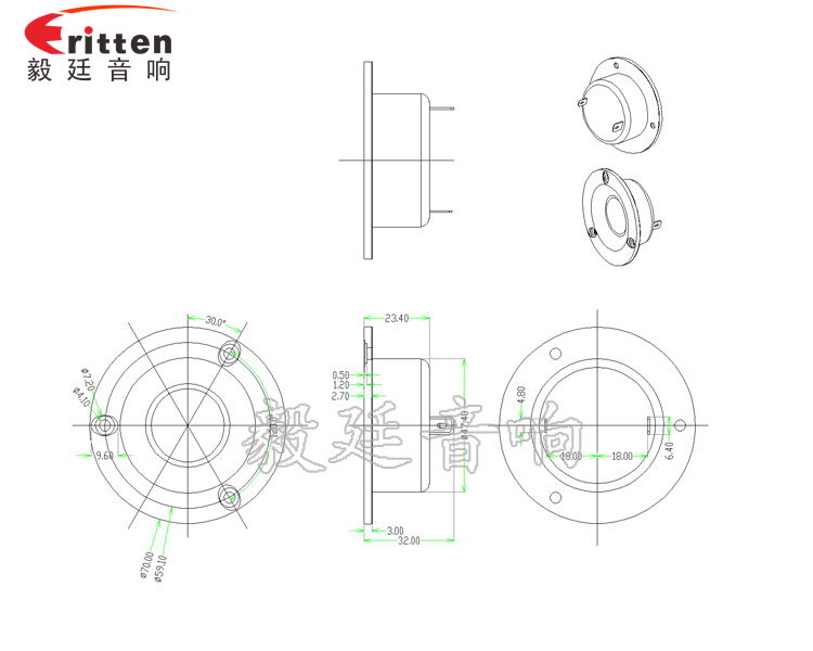 毅廷喇叭工程師研發(fā)出優(yōu)異用于70mm15W故事機(jī)中高音喇叭、學(xué)習(xí)機(jī)上,最大功率為30W,頻寬超寬,音質(zhì)清晰飽滿,清脆悅耳。
