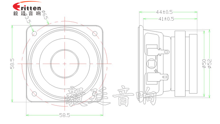 58mm方型外磁雙磁重低音喇叭,高性能鐵氧體,靈敏度高,質(zhì)感強(qiáng)、低頻震撼;