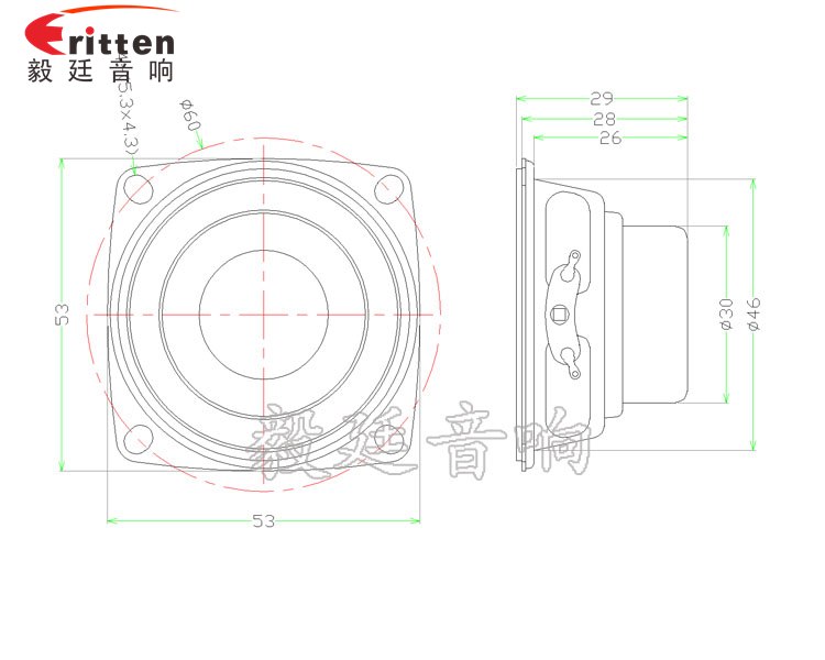 45mm方形鐵盆架內(nèi)磁全頻喇叭,采用高品質(zhì)稀土高強磁,靈敏度高,磁性強,音色清晰;
