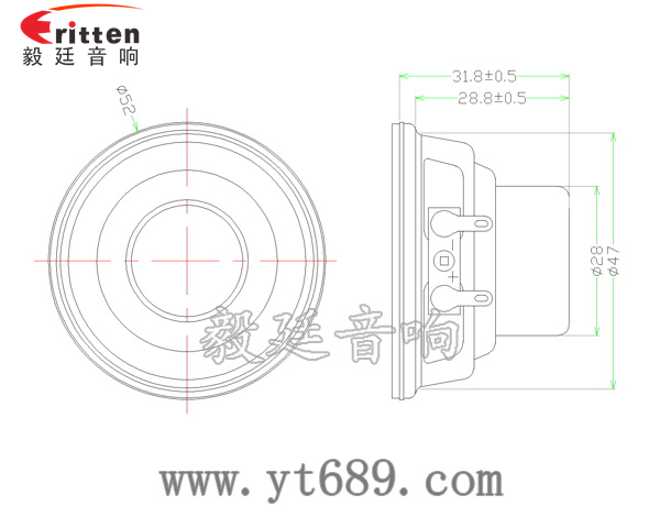 52mm圓形鐵盆架內(nèi)磁全頻喇叭,用的是優(yōu)質(zhì)的材料一次成型,散熱性能好,耐沖擊,性能卓越。