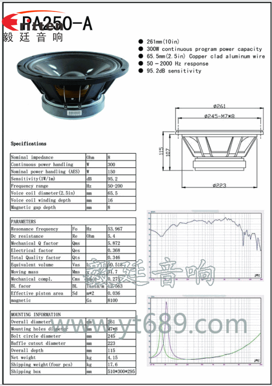 此款廣泛應用10寸舞臺重低音喇叭上,它的額定功率達到150W,超高靈敏度,超大功率,的放水防潮喇叭,聽感厚實,音色飽滿,客戶的首選產(chǎn)品。
