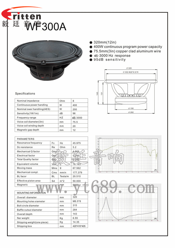 此款廣泛用于PA音箱系列、專業(yè)舞臺(tái)音響,大功率,低頻震撼,毅廷音響工程師精心研發(fā)12寸大功率重低音喇叭,音色清晰;