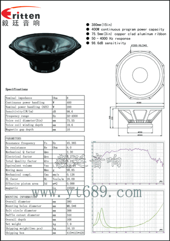 此款超大型超級(jí)重低音15寸舞臺(tái)音箱喇叭,額定功率達(dá)到200W,最大能承載400W,也可用于KTV音箱、演唱會(huì)音箱、廣場(chǎng)音箱上,聲音澎湃,打造出逼真的現(xiàn)場(chǎng)效果。