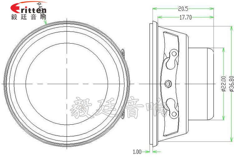 40mm圓形鐵盆架內(nèi)磁全頻喇叭,采用的是高性能稀土高強(qiáng)磁,音色飽滿、質(zhì)感強(qiáng);