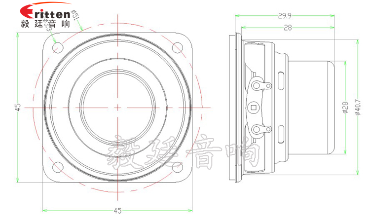 45mm方形鐵盆架內(nèi)磁全頻喇叭,采用稀土高強磁磁鋼,密度高,磁性強,使音色清晰、飽滿;